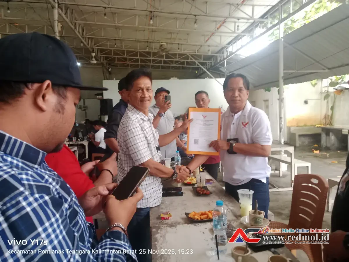 Kalbar.WARTAGLOBAL.id.-- Pontianak, selasa 25 November 2025, Suasana hangat dan penuh kekeluargaan tampak menyelimuti pertemuan DPD GWI Provinsi Kalimantan Barat saat Ketua DPD, Alfian, kembali melebarkan sayap organisasi dengan memperluas kepengurusan. Pada momen penuh semangat itu, Alfian secara resmi mengangkat dan menyerahkan Surat Keputusan (SK) kepada Ketua Dewan Pimpinan Cabang (DPC) GWI Pontianak Kota Syarif Syukur.