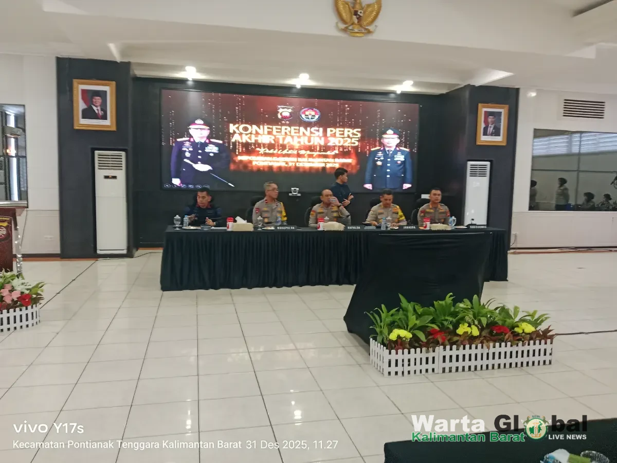 Kalbar.WARTAGLOBAL.id-- Pontianak, 31 Desember 2025, Kepala Kepolisian Daerah Kalimantan Barat, Irjen Pol Pipit Rismanto, S.I.K.,M.H., menggelar konferensi pers akhir tahun guna memaparkan capaian kinerja jajaran Polda Kalbar sepanjang tahun. Kegiatan yang berlangsung di Mapolda Kalbar tersebut dihadiri oleh pejabat utama Polda Kalbar serta insan pers dari berbagai media.