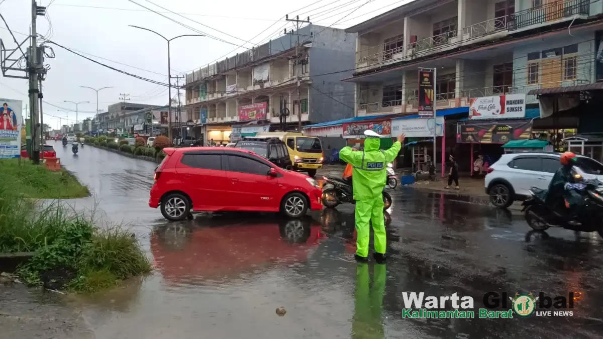 Kalbar.WARTAGLOBAL.id-- Polres Melawi Polda Kalbar, Hujan yang turun sejak malam hingga pagi pada Selasa, (10/3) tidak menyurutkan semangat para personel Polisi Lalu Lintas Polres Melawi dalam menjalankan tugasnya. Di tengah rintik hujan yang membasahi jalanan, para petugas sudah berdiri di sejumlah titik persimpangan dan ruas jalan utama untuk mengatur arus lalu lintas.