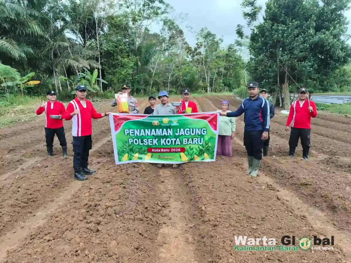 Kalbar.WARTAGLOBAL.id-- Polres Melawi Polda Kalbar — Dalam rangka mendukung program ketahanan pangan nasional, Kapolsek Kota Baru Iptu Edi Herianto bersama personel Polsek Kota Baru turut ambil bagian dalam kegiatan penanaman jagung hibrida yang dilaksanakan pada Rabu pagi (22/4/2026).